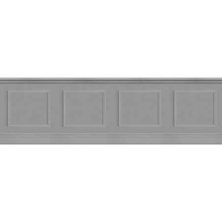 Papel pintado GAFR200469387 La Bibliotheque, en color piedra, que simula a un zócalo de madera que imita a una boiserie.