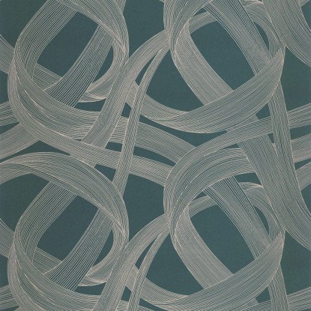 Papel pintado ANFO201066155 Shimmy, en color azul petróleo y gris, de la colección Annees Folles de Casadeco.