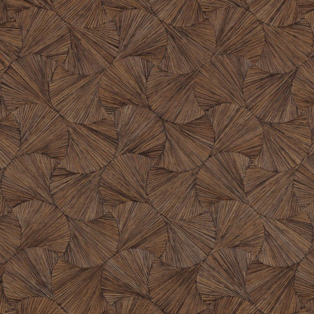 Papel pintado 75321324 Lombok, que reproduce un dibujo de escamas en taracea, en color chocolate, de la colección Archipel de Casamance.