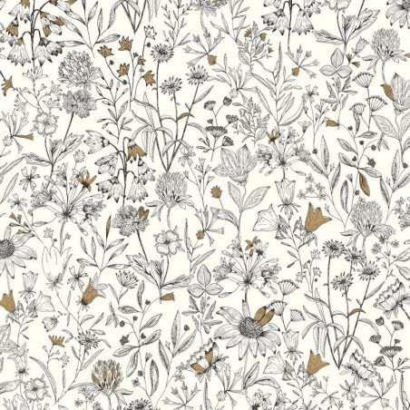 Papel pintado AOB103000215 Jardin de Giverny, en color blanco y oro, de la colección Art Of Botany de Caselio.