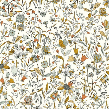 Papel pintado AOB103000325 Jardin de Giverny, en color blanco y naranja, de la colección Art Of Botany de Caselio.