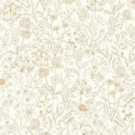 Papel pintado AOB103002044 Jardin de Giverny, en color blanco y oro, de la colección Art Of Botany de Caselio.