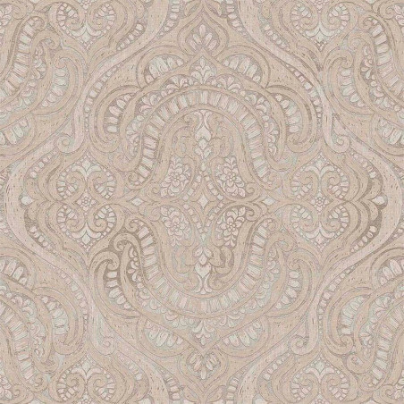 Papel pintado 42212 Intarsio, con una interpretacion moderna del cachemir. De la colección Aura de Parato, diseñada por Cristiana Masi.