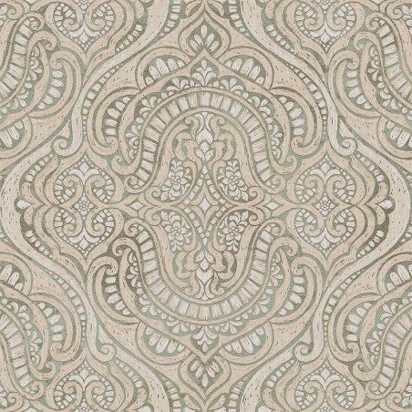 Papel pintado 42217 Intarsio, con una interpretacion moderna del cachemir. De la colección Aura de Parato, diseñada por Cristiana Masi.