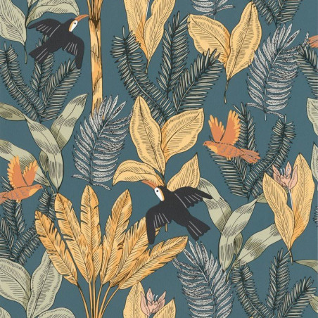 Papel pintado ADM103496043 Explorer en color azul noche de la colección Autour Du Monde de Caselio.