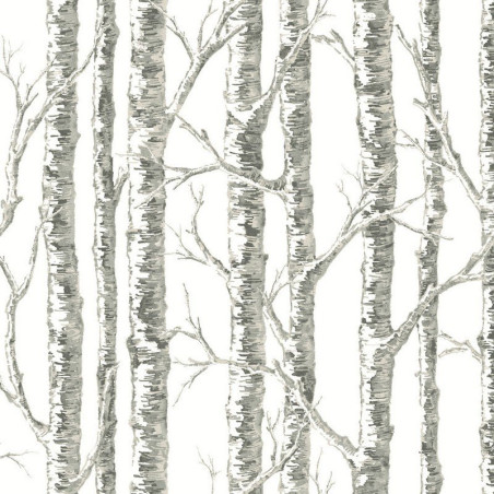Papel pintado BW3901 Paper Birch en color blanco y gris de la colección Black & White Resource Library de York Wallcoverings.