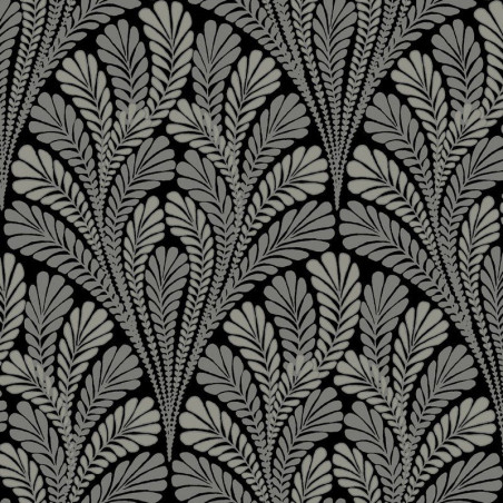 Papel pintado BW3951 Shell Damask en color negro y destello de la colección Black & White Resource Library de York Wallcoverings.