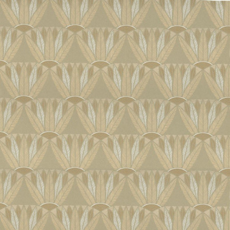 Papel pintado 76161732 Castalia, en color verde ceniza y dorado, de la colección Bord du Nil de Casamance.