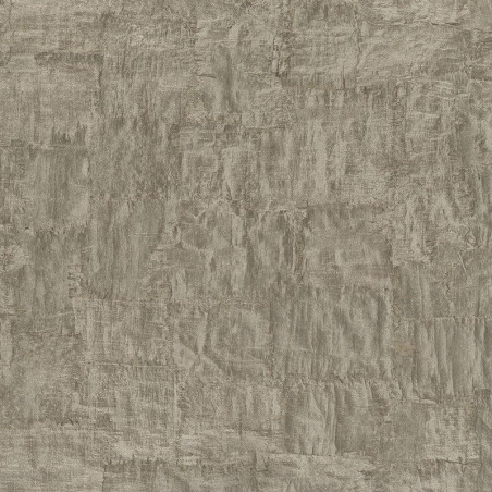 Papel pintado con textura imitando un mosaico de trozos de mazorca o palmera, en color bronce metalizado, con ligero relieve.