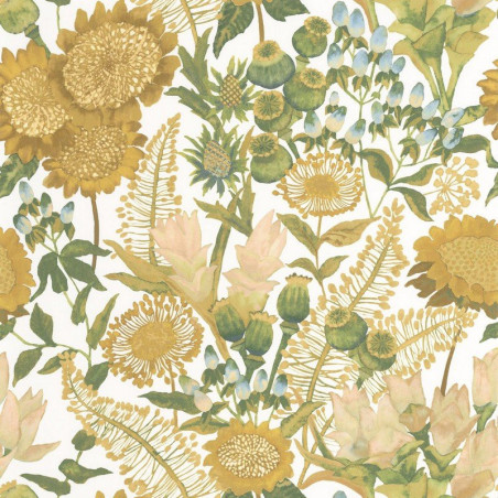 Papel pintado ECHA89817323 Saint-Paul de Vence, en color verde anís y amarillo sol, de la colección Echappee Belle de Casadeco.