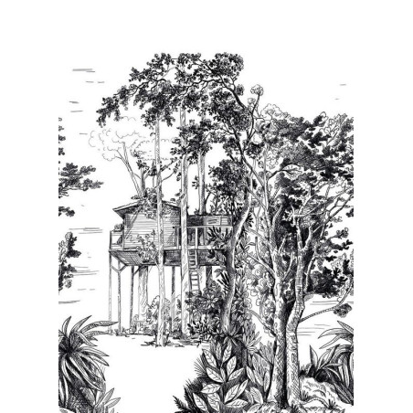 Mural panorámico GNL2105420903 The Garden Shed, en color blanco y negro, de la colección Green Life 2 de Caselio.