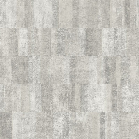 Papel pintado textura textil imitando hilo con estampado difuso de rectángulos geométricos en color gris cemento y blanco todo mate.