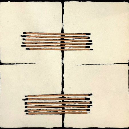 Papel pintado RM 1058 02 Noto, fondo en color hueso y negro y relieve en marrón. Confeccionado de forma artesanal, pertenece a la colección Hanji de Elitis.