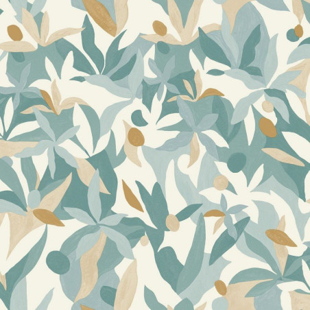 Papel pintado IMG102166020 Fauve en color azul, beige y dorado de la colección Imagination de Caselio.