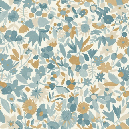 Papel pintado IMG102196027 Naivete en color azul, beige y dorado de la colección Imagination de Caselio.
