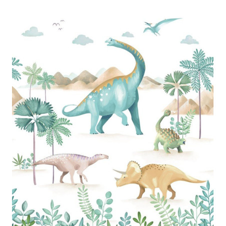 Mural panorámico MNM105774501 La Monde des Dinosaures, en color verde, de la colección Les Mini Mondes de Caselio.