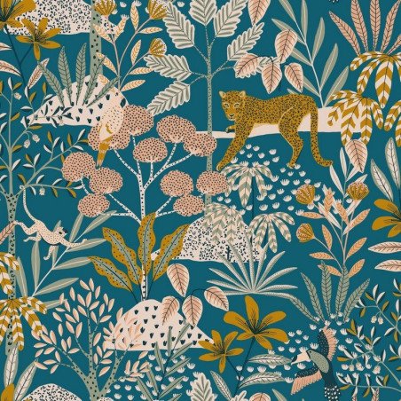 Papel pintado LGG104486488 Jane, en color azul noche y rosa, de la colección Let's Go Girls de Caselio
