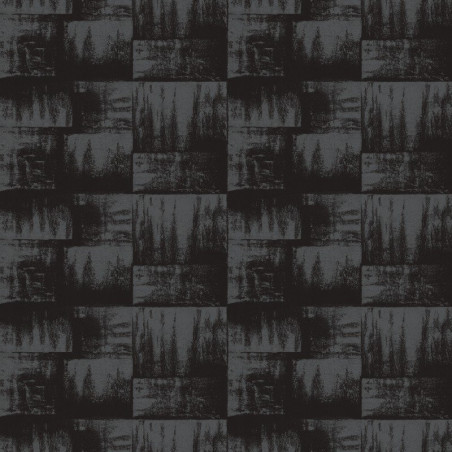 Papel pintado RM 1047 80 Muse, en color antracita y negro. Encalado sobre arpillera. De la colección Lin Platre de Elitis.