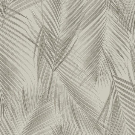 Papel pintado 25302 Felce Simposium, diseño de hojas de palmera que evocan la suavidad y transparencia de la acuarela. De la colección Living de AltaGamma para Jannelli & Volpi.