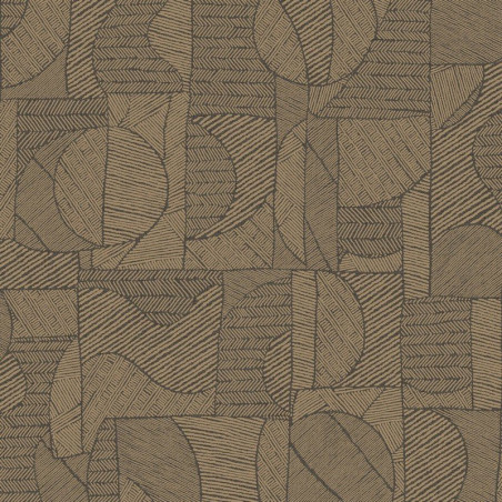 Papel pintado MATA201162707 Baman, con efecto de patrones geométricos textiles, en color bronce y negro, de la colección Matera de Casadeco.