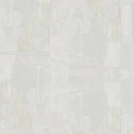 Papel pintado 25704 Cosmogeo, con formas asimétricas, en color gris y aluminio. De la colección Materic de AltaGamma para Jannelli & Volpi.