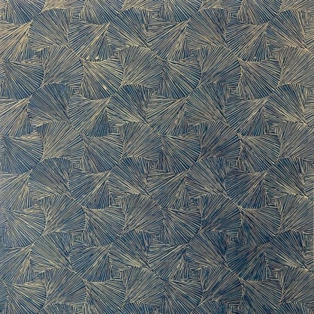 Papel pintado 76522752 Songket, en color azul pato y dorado, de la colección Nature Precieuse de Casamance.