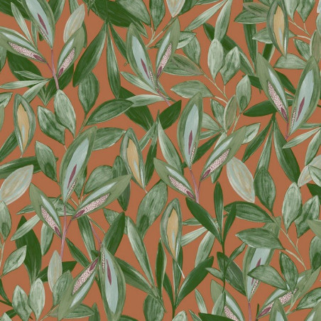 Papel pintado NICA85973313 Hojas en color verde y naranja de la colección Nicaragua de Casadeco.