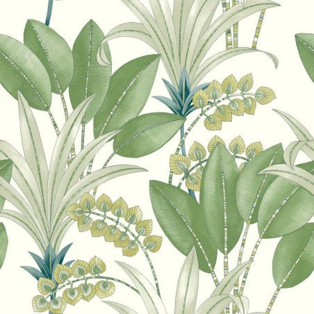 Papel pintado NICA86417353 Palma en color verde y azul de la colección Nicaragua de Casadeco.