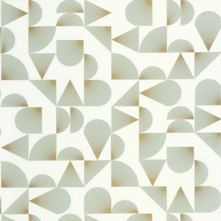 Papel pintado OTLS105030754 Contour, en color verde agua y oro, de la colección Outlines de Caselio.