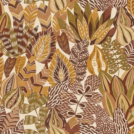 Papel pintado 76691528 Alfabia, en color terracota y curry, de la colección Palmadora de Casamance.