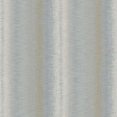 Papel pintado RE25143, que simula chenilla con rayas difusas, en color azul, cáñamo y perla, de la colección Reflect de Iberostil.