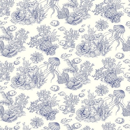 Papel pintado 201476446 Cote Sauvage, en color blanco roto y ultramar, de la colección Seaside de Casadeco.