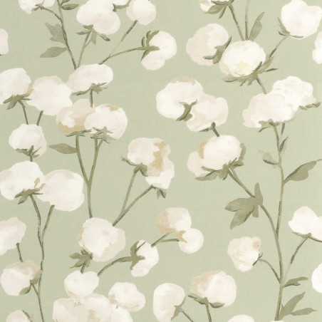 Papel pintado SOLI200297202 Cotton Flower, en color verde musgo, de la colección Soliflore de Casadeco.