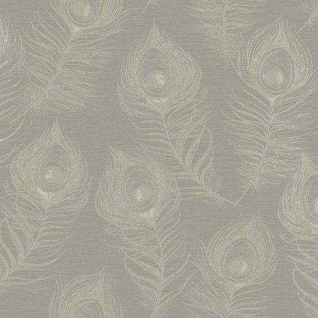 Papel pintado EV3941 Regal Peacock, en color visón, de la colección Casual Elegance. De la diseñadora Candice Olson para York Wallcoverings.