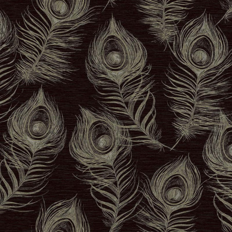 Papel pintado EV3942 Regal Peacock, en color negro, de la colección Casual Elegance. De la diseñadora Candice Olson para York Wallcoverings.